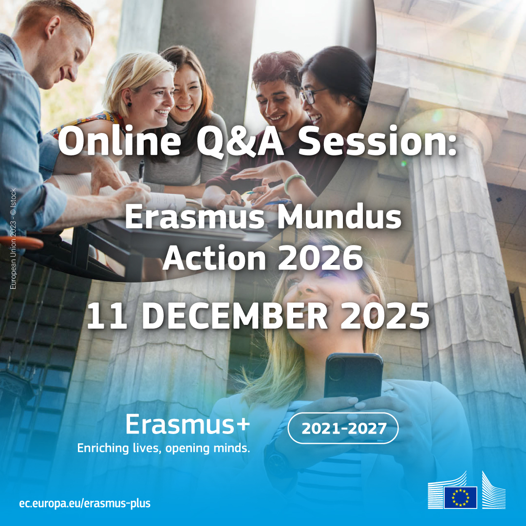 Pour vous aider à naviguer dans les appels Erasmus Mundus Joint Masters et Erasmus Mundus Design Measures, nous organisons une session en ligne de questions-réponses où vous obtiendrez des informations sur les nouveautés ainsi que des réponses à vos questions