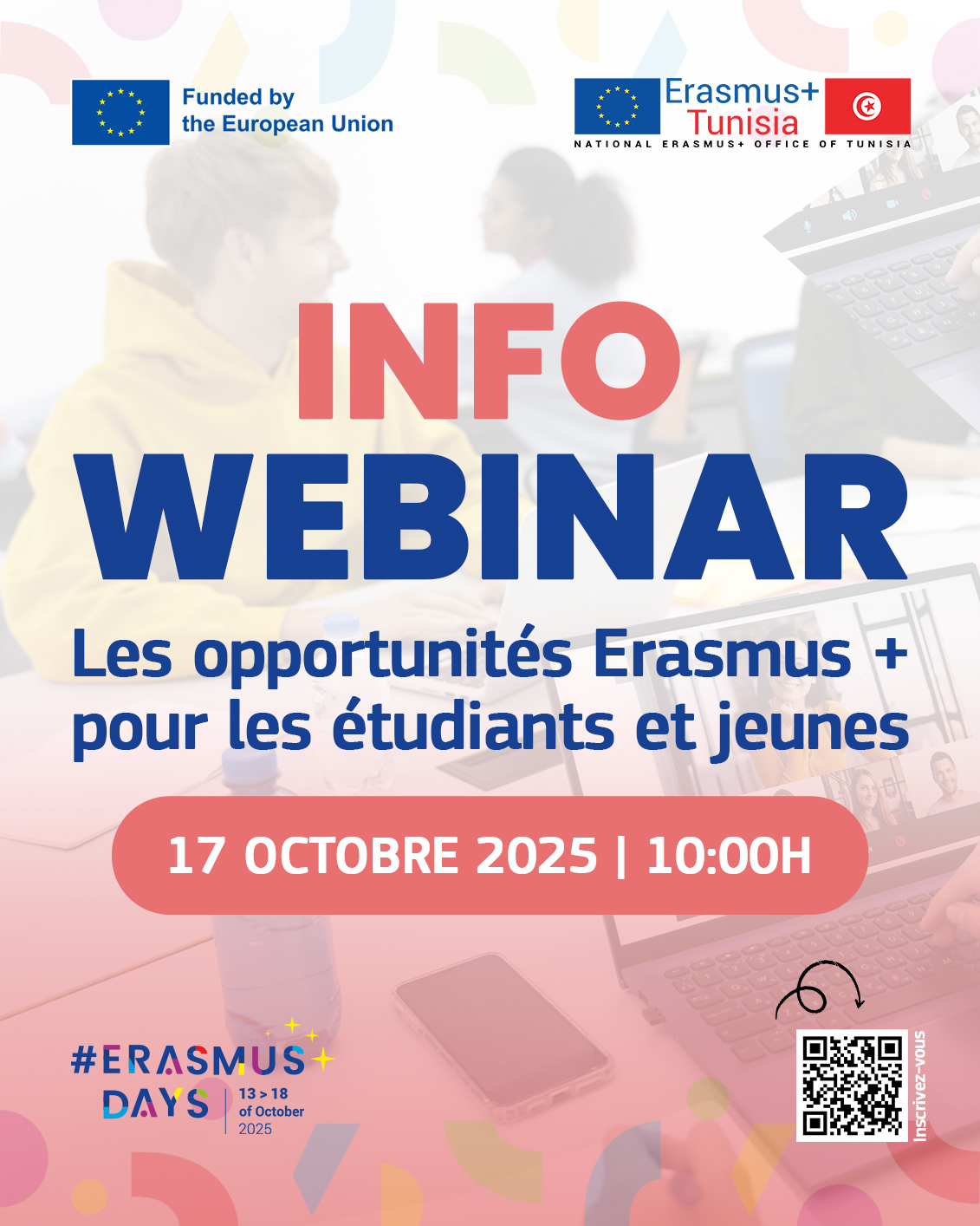 Le Bureau Erasmus+ Tunisie a organisé un webinaire national consacré aux opportunités offertes par le programme Erasmus+.